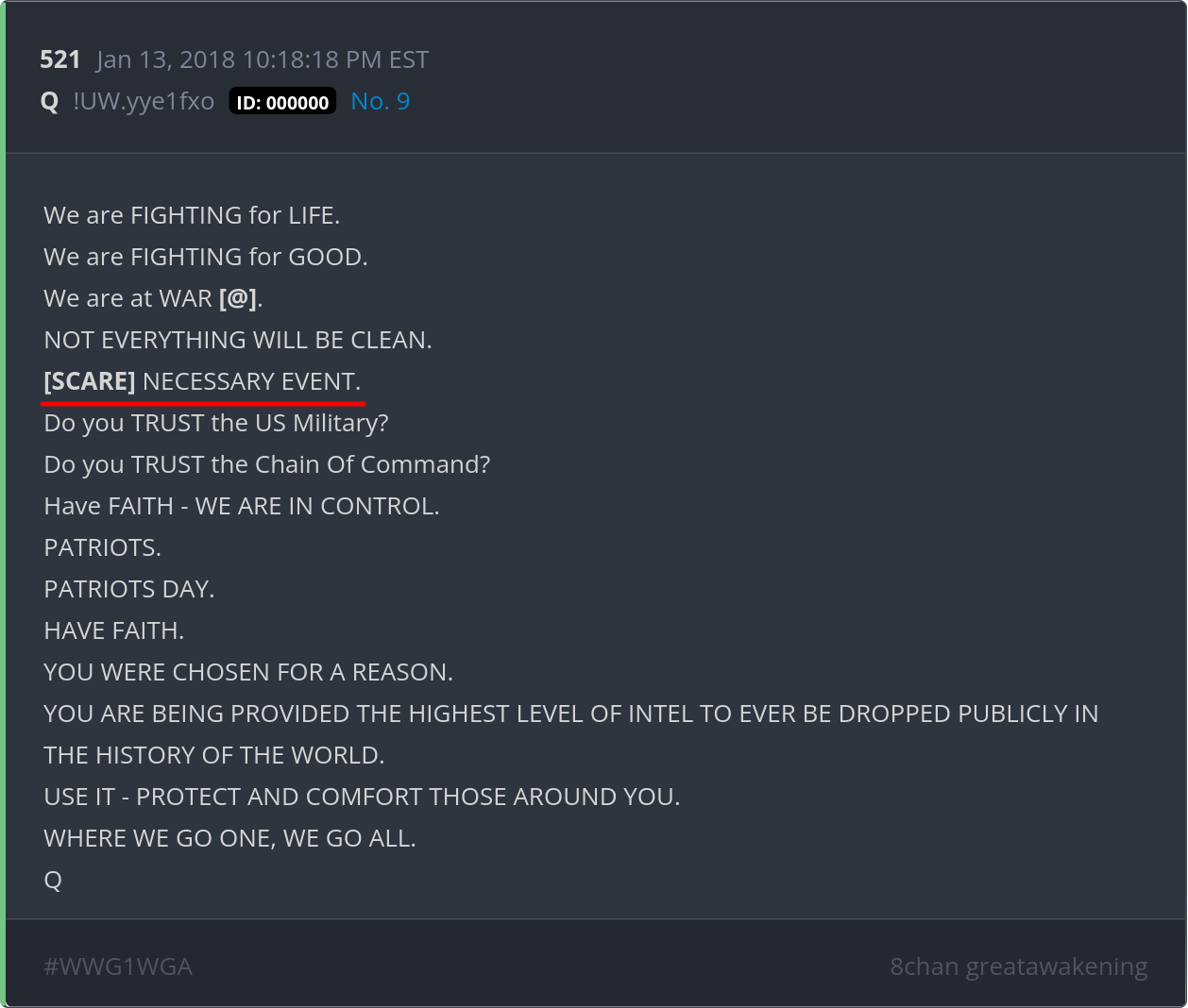 However, President Trump told us “maybe it’s the silence before the storm”, and Q warned us a scare event was necessary.