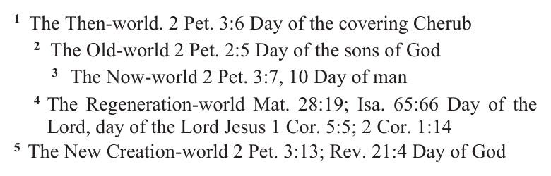 This was the end of the first aion. Anybody who believes in the God inspired Scriptures understands these are two different events. Old World — Then World and the difference in the two Greek words used Kataklusmos — Katakluzo. Two aions, both destroyed by water. When I was on Bibleforums.org (site no longer exists) many of the participants fought me for this and gave their standard answer. That is all the same. Based on the translation and not even then and not on the source text. One thing is sure, if you want to study Scripture, you have to go back to the source language and now a days we have great tools just for that.)