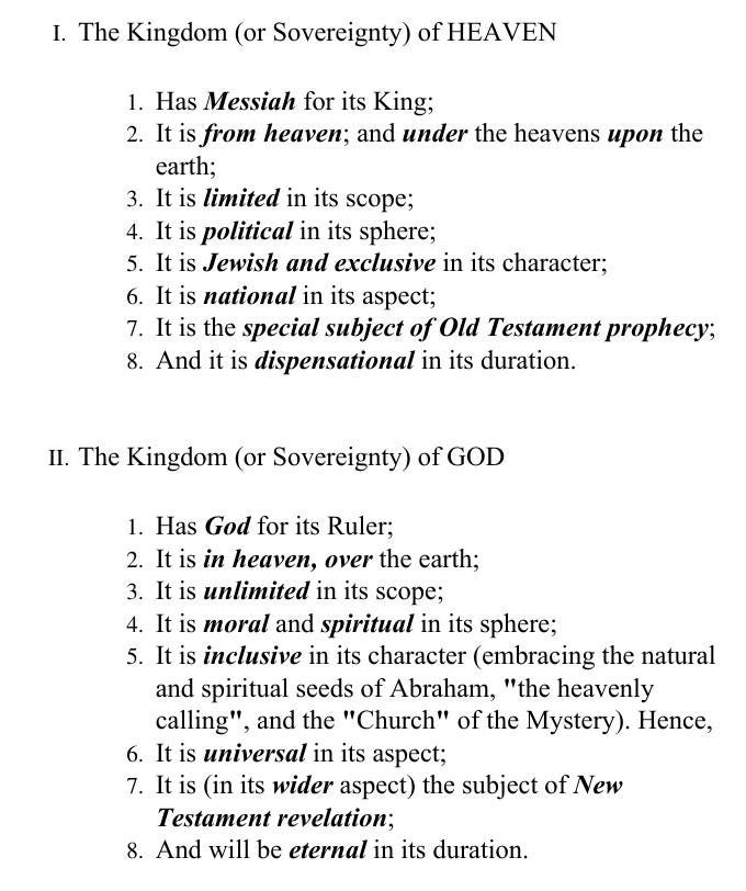 Let’s summaries the difference between Kingdom of God and Kingdom of Heaven, we have the following (taken from the Companion Bible):